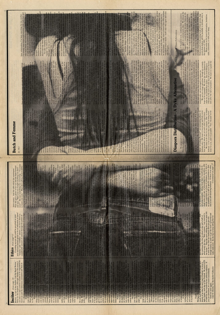 Most moments are either actively happening and I have to pause them, or I put a mental pin in them to revisit and recreate later. For example, in the image printed on the newspaper that says ‘Butch and Femme’ the person depicted in the photo was hugging me in a similar way earlier that afternoon. Because of how special the moment felt, I asked them if we could re-enact that moment so I could produce the image. In the image of the woman in front of the window putting her clothes on, Ash Changing (Hudson), she was doing so before I took the photo, and I asked if she could undress herself and then redress so I could capture that beautiful moment.