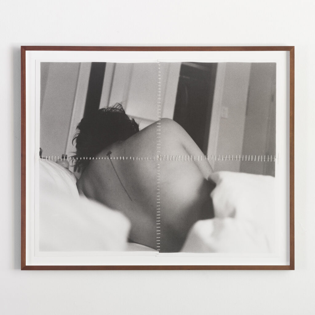 This was the first print that I’ve ever sewn together. The stitching came out of necessity for this image, because I was creating this work for the Lacuna exhibition and was in a major time crunch. I ordered sheets of paper that arrived damaged and was very set on printing on that specific type of paper. I quickly went into problem-solving mode and thought about how I could salvage the material, which resulted in dissecting and rejoining the image. Since stitching that piece, I’ve thought about how in relationships and in creating artwork, I have a hard time letting go. I’m an overthinker and attempt to fix things that maybe don’t need to be fixed, or aren’t fixable; sewing is how I work through it.