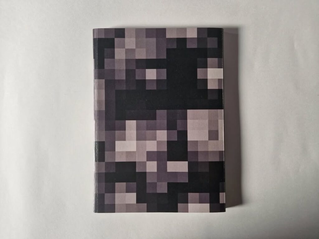 Yeah, so a riso printer, it prints in only one color. In this case black. And that’s why you see all those dots, when you look closely. ‘Cause it can’t print gray, so if you want gray, you sort of need to add less dots.